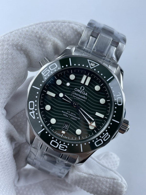 (준비완료/특급배송/)NO.1194/VS공장 오메가 씨마스터 다이버 300M 스틸 그린다이얼 브레이슬릿 러버밴드 > 쇼핑