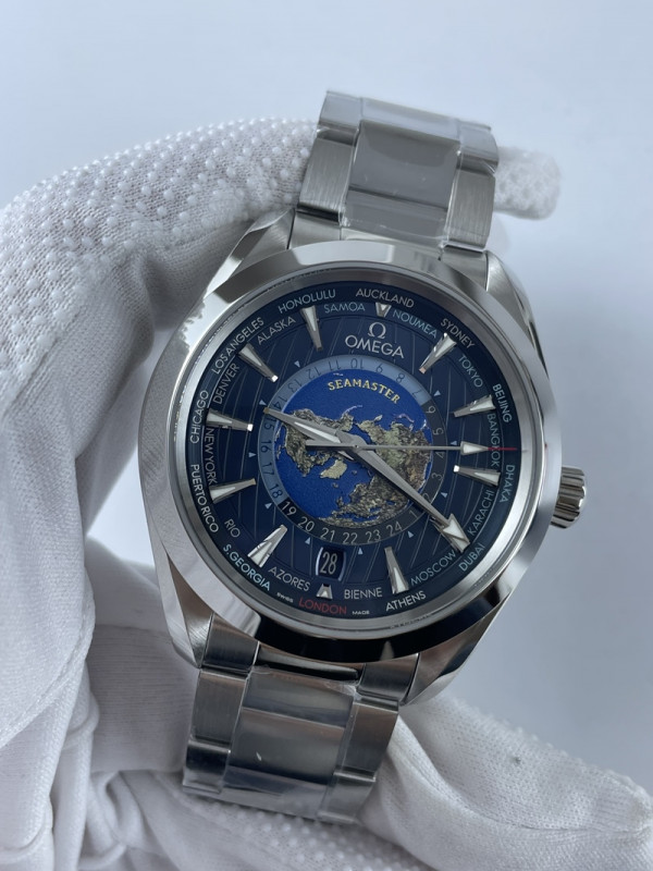 • (준비완료/특급배송)NO.2218/VS공장 오메가 아쿠아테라 월드타이머 블루다이얼 브슬